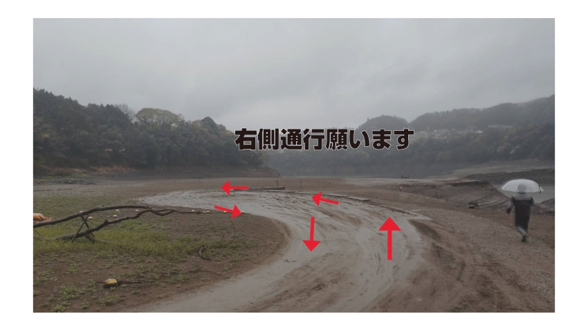 (荷下ろし場付近は雨が降りスタックするため車ではいけません)