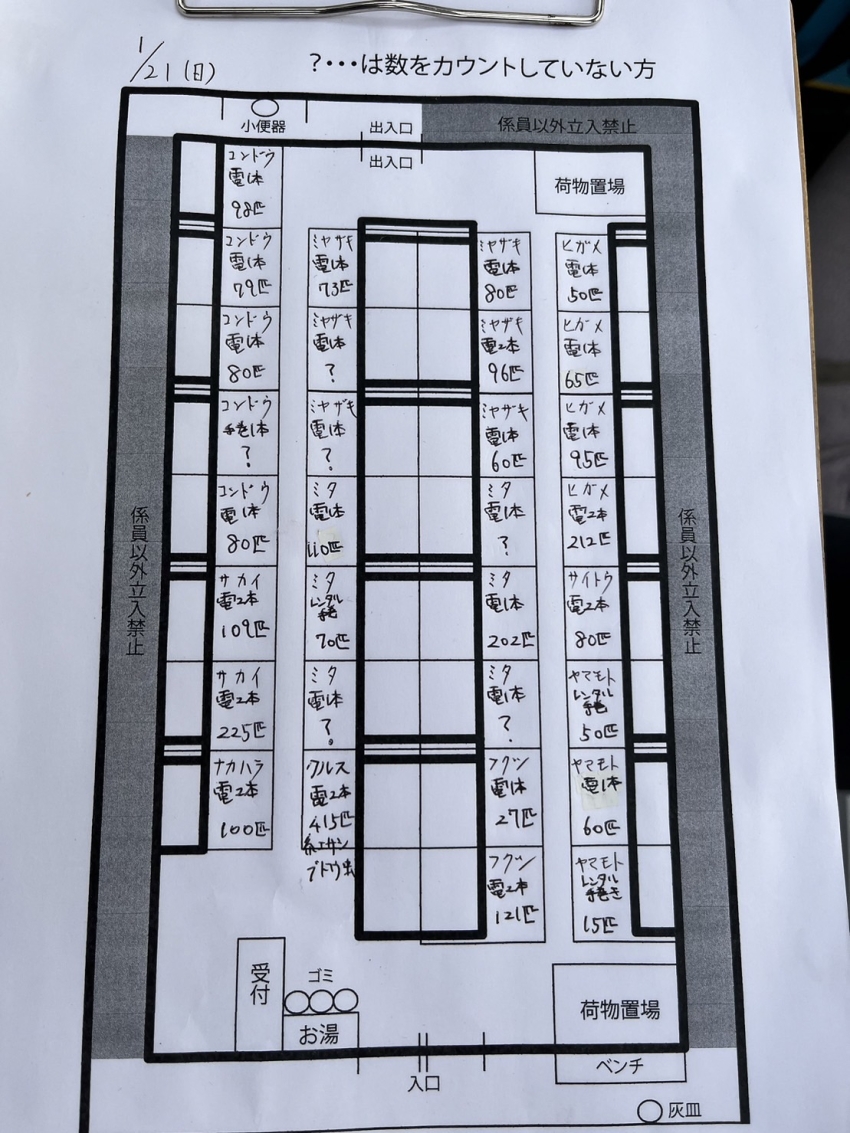 わかさぎ 2024.01.21 1/21(日) ワカサギドーム釣果 トップはクルスさんで415匹 電動2本、紅サシ、ブドウ虫 レンタルや手巻きの方でも30~100匹ほど 釣れてます! 【餌】 紅チーズ、250円 白チーズ、230円 ブドウ虫、700円 SPブドウ虫1200円※要予約