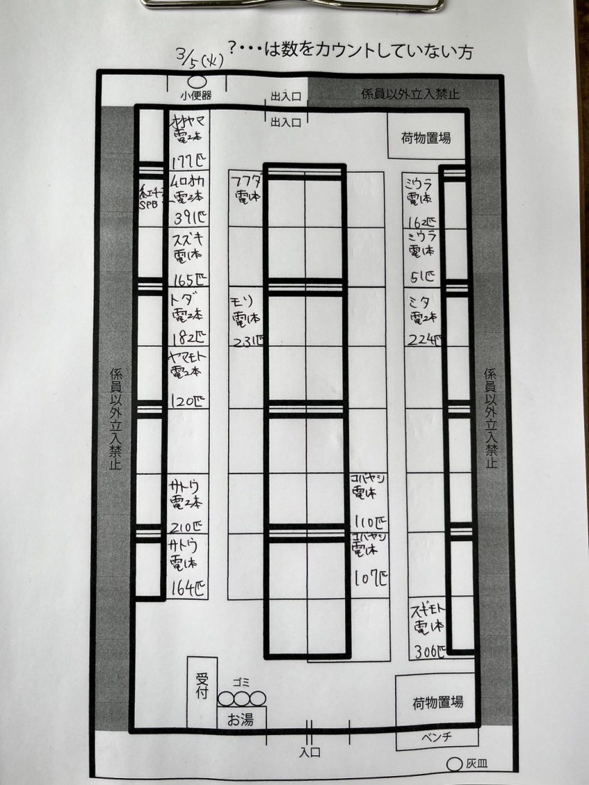 わかさぎ 2024.03.05 3/5(火) ワカサギドーム釣果 トップはムロオカさんで391匹 電動2本、紅チーズ、SPB レンタルや手巻きの方でも30匹ほど 釣れてます! 【餌】 紅チーズ、250円 白チーズ、230円 ブドウ虫、700円 SPブドウ虫1200円※要予約