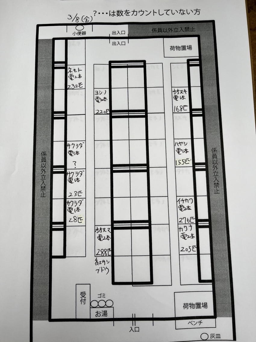 わかさぎ 2024.03.08 3/8(金) ワカサギドーム釣果 トップはオオヌマさんで288匹 電動2本、紅サシ、ブドウ虫 レンタルや手巻きの方でも30匹ほど 釣れてます! 【餌】 紅チーズ、250円 白チーズ、230円 ブドウ虫、700円 SPブドウ虫1200円※要予約