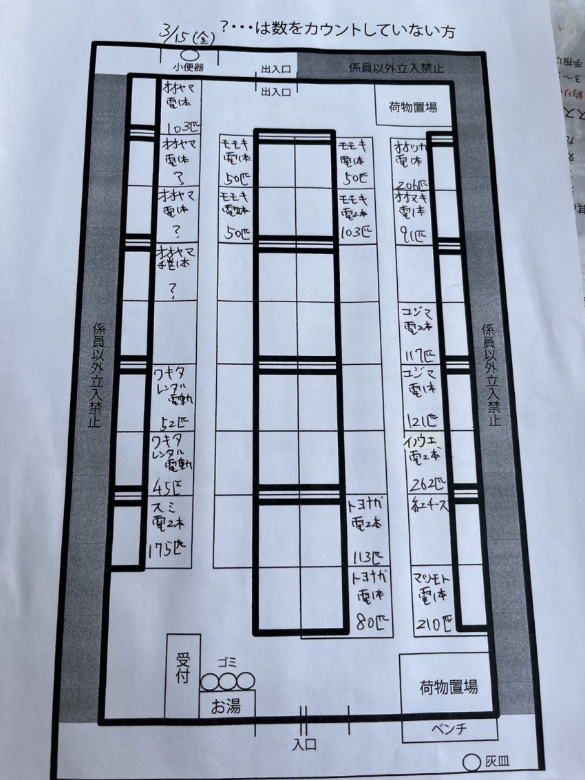 わかさぎ 2024.03.15 3/15(金) ワカサギドーム釣果 トップはイノウエさんで262匹 電動2本、紅チーズ レンタルや手巻きの方でも30匹ほど 釣れてます! 【餌】 紅チーズ、250円 白チーズ、230円 ブドウ虫、700円 SPブドウ虫1200円※要予約