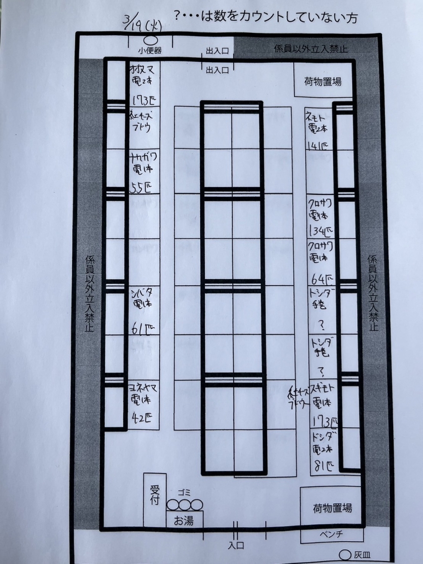 わかさぎ 2024.03.19 3/19(火) ワカサギドーム釣果 トップはスギモトさんとオオヌマさん スギモトさん173匹 電動1本、紅チーズ、ブドウ虫 オオヌマさん173匹 電動2本、紅チーズ、ブドウ虫 同じ数だったので2人に竿頭ステッカー差し上げました! レンタルや手巻きの方でも30匹ほど 釣れてます! 【餌】 紅チーズ、250円 白チーズ、230円 ブドウ虫、700円 SPブドウ虫1200円※要予約